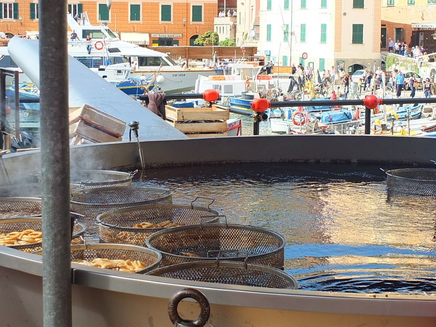 Camogli gehört mit seinen mit kräftigen Farben dekorierten Häusern zu den bekanntesten Fischerorten westlich des Vorgebirges von Portofino. Noch heute werden hier Schiffsmodelle produziert und auch die Fischerei ist im vollen Gange. Im Mai werden hier bei der Sagra del Pesce verschiedene Fischspezialitäten in der größten Fischpfanne der Welt frittiert und an die Gäste und Touristen verteilt. Ein Highlight ist der „Christus des Meeresgrundes“ , der 1954 von dem Bildhauer Guido Galletti ins Meer gesetzt wurde.